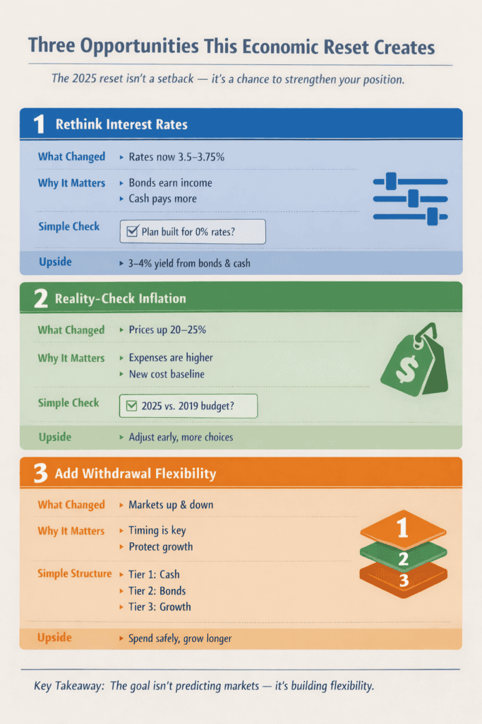 What 2025 proved: Positive years can create false confidence. Volatile years reveal whether your plan has flexibility or whether you’re just hoping things work out.