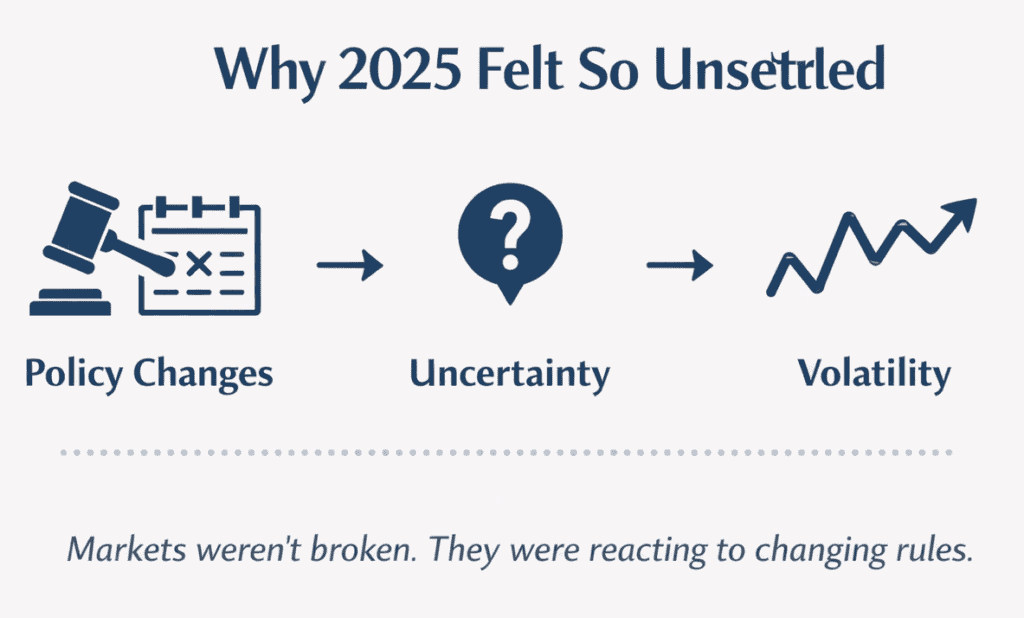 Understanding why 2025 was volatile helps explain why this was a reset year rather than a recovery year.