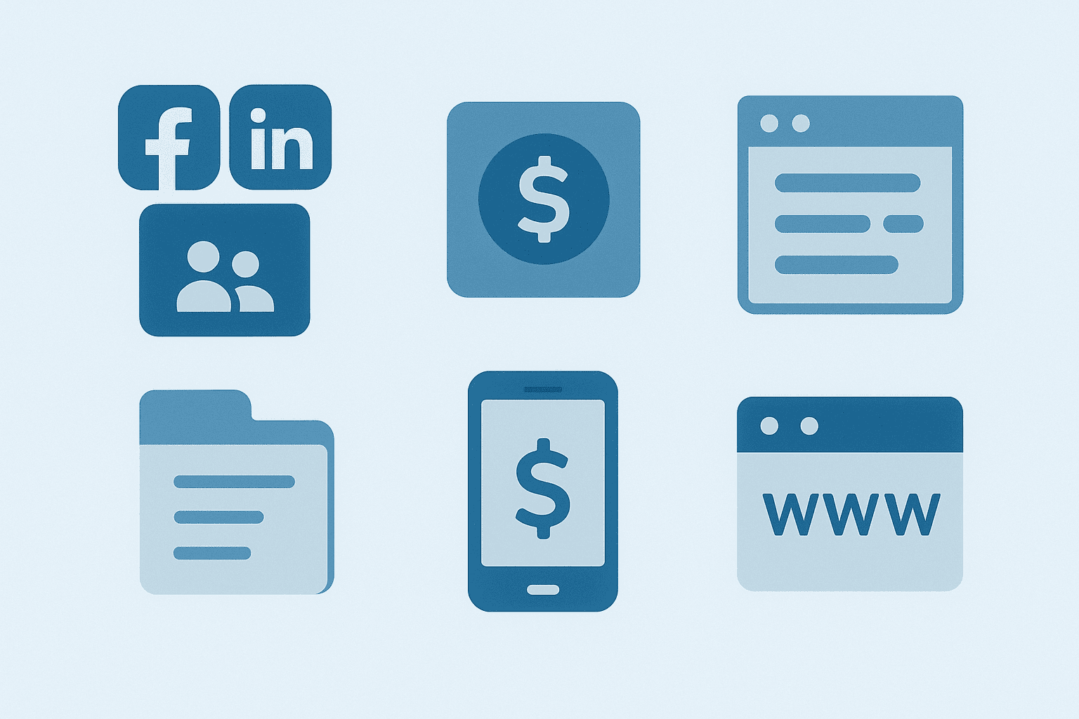 - Email accounts, social media accounts (Facebook, Instagram, LinkedIn)